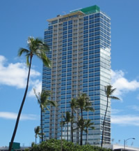 | 2007年2月築のツインタワーコンド。価格は、$500,000〜(1ベッドルーム,65u)です。場所はアラモアナショッピングセンターまで徒歩3分、ウォルマートやワードセンターもすぐのアラモアナ、カカアコ地区です。台湾の開発業者によるコンドです。この周辺には今後更に高層コンドが建築中です。 |