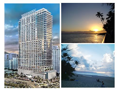 | カカアコ地区に続々建設中のコンドの一つ。2007年中に完成予定で、1階には商業施設を併設し、設備の充実した最新コンドとなります。開発業者は韓国の企業です。価格は低め$260,000(3千万円)〜となっています。 |
